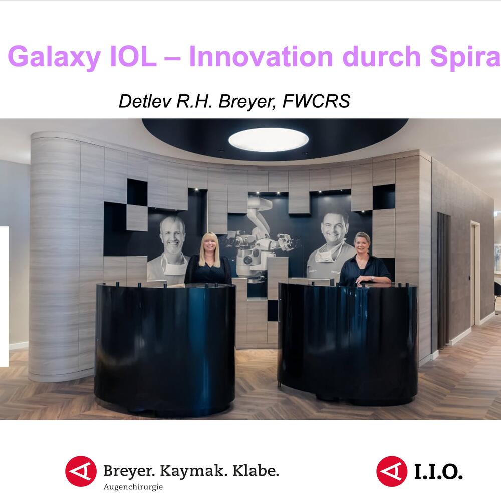 In seinem Vortrag, den er anlässlich des 43. ESCRS Kongresses in Kopenhagen hielt, stellt Dr. Detlev R.H. Breyer, FWCRS, die innovative Spiraloptik der RayOne Galaxy IOL vor. Er war international der erste Augenchirurg, der diese Linse nach Abschluss der Studie implantieren durfte. In seinem Vortrag teilt er seine Erfahrungen mit der Linse. Neben einer Beschreibung der Optik und ihrer Vorteile gegenüber diffraktiven Trifokallinsen geht er auf die passende OP-Methode ein und positioniert die Linse in unserer MI-LENS-Strategie, nach der wir Premiumlinsen individuell für Patienten auswählen.